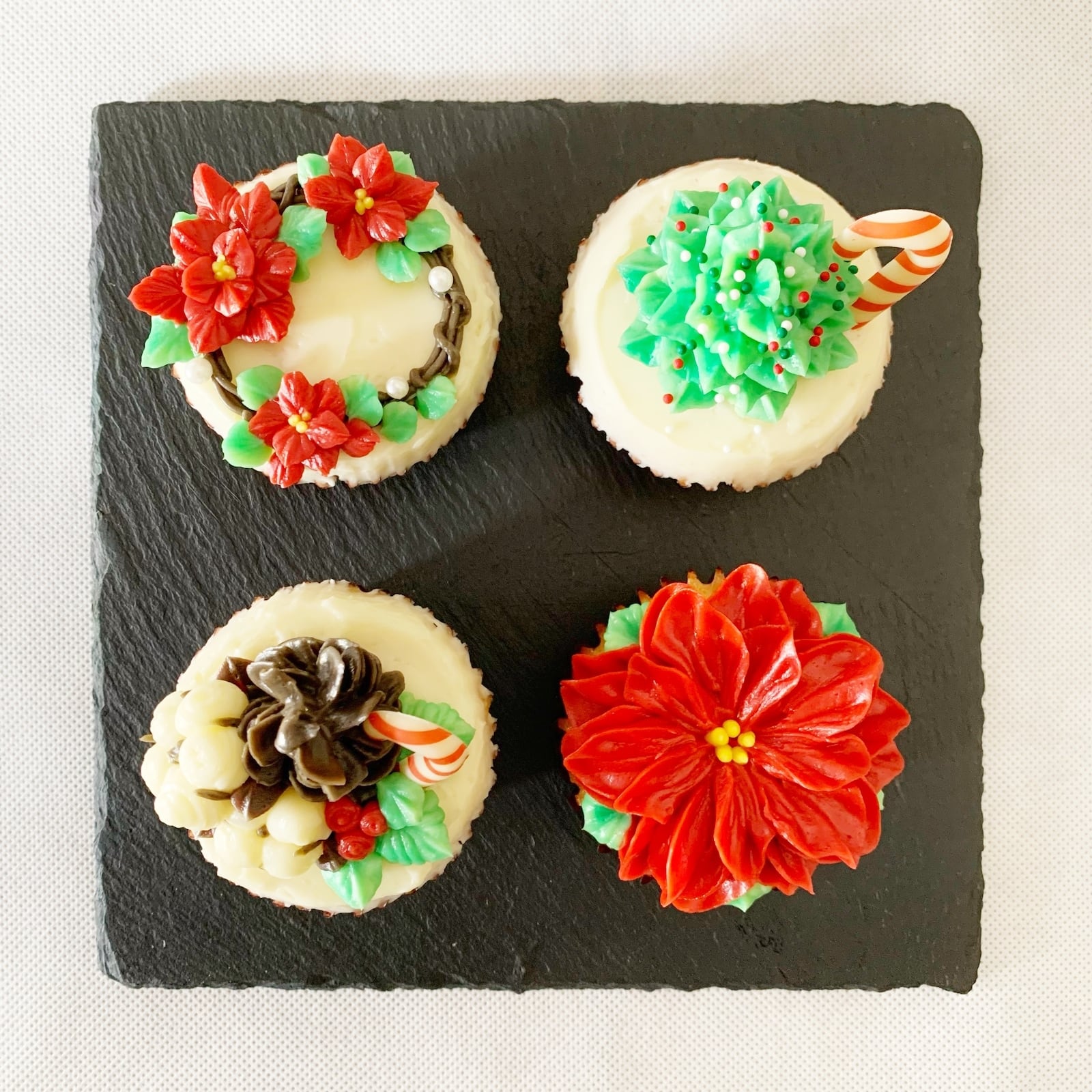 可憐なお花が咲き誇るX'masフラワーカップケーキの数々。この数量限定の4個セットは、特別な日に華やかさを添えてくれること間違いなしです。