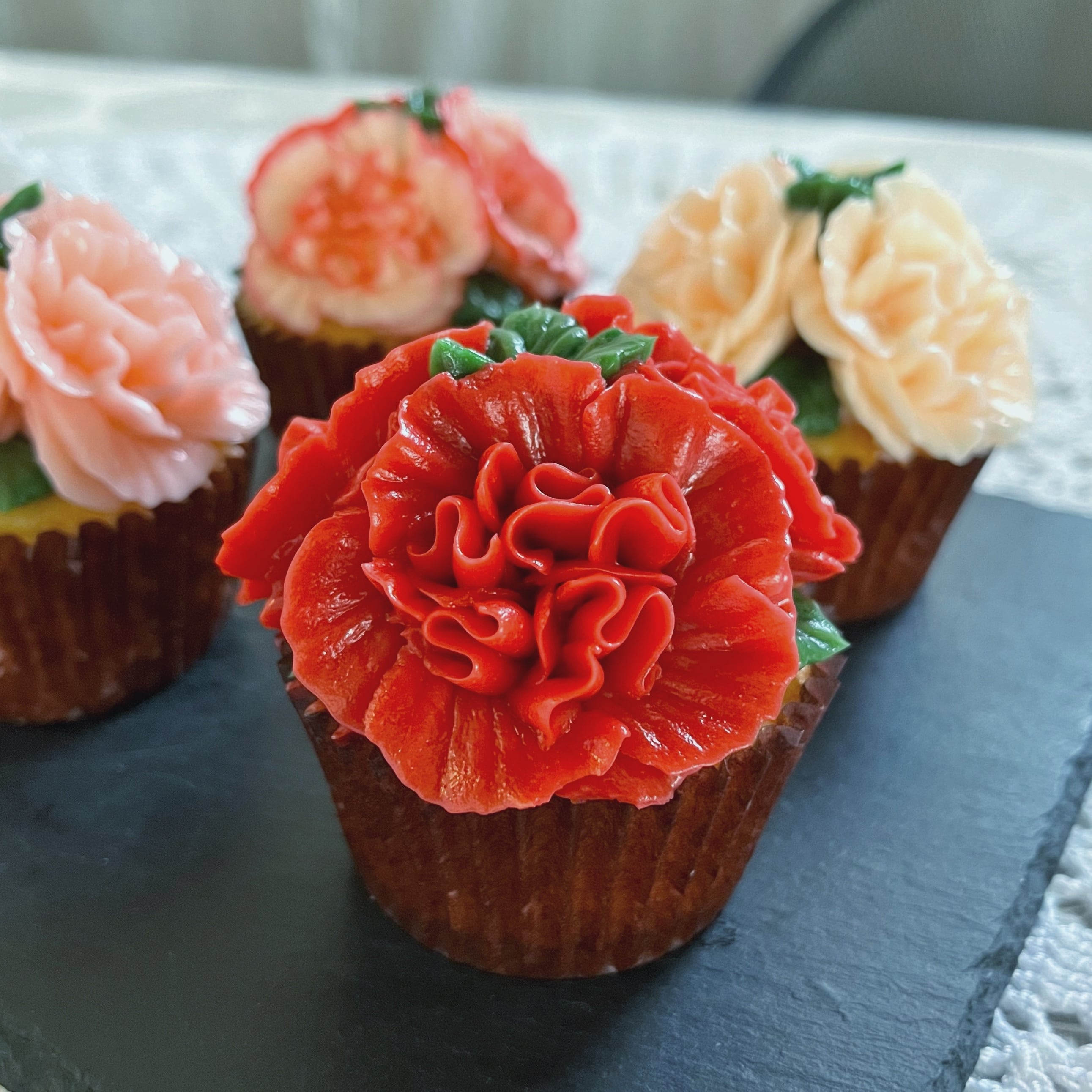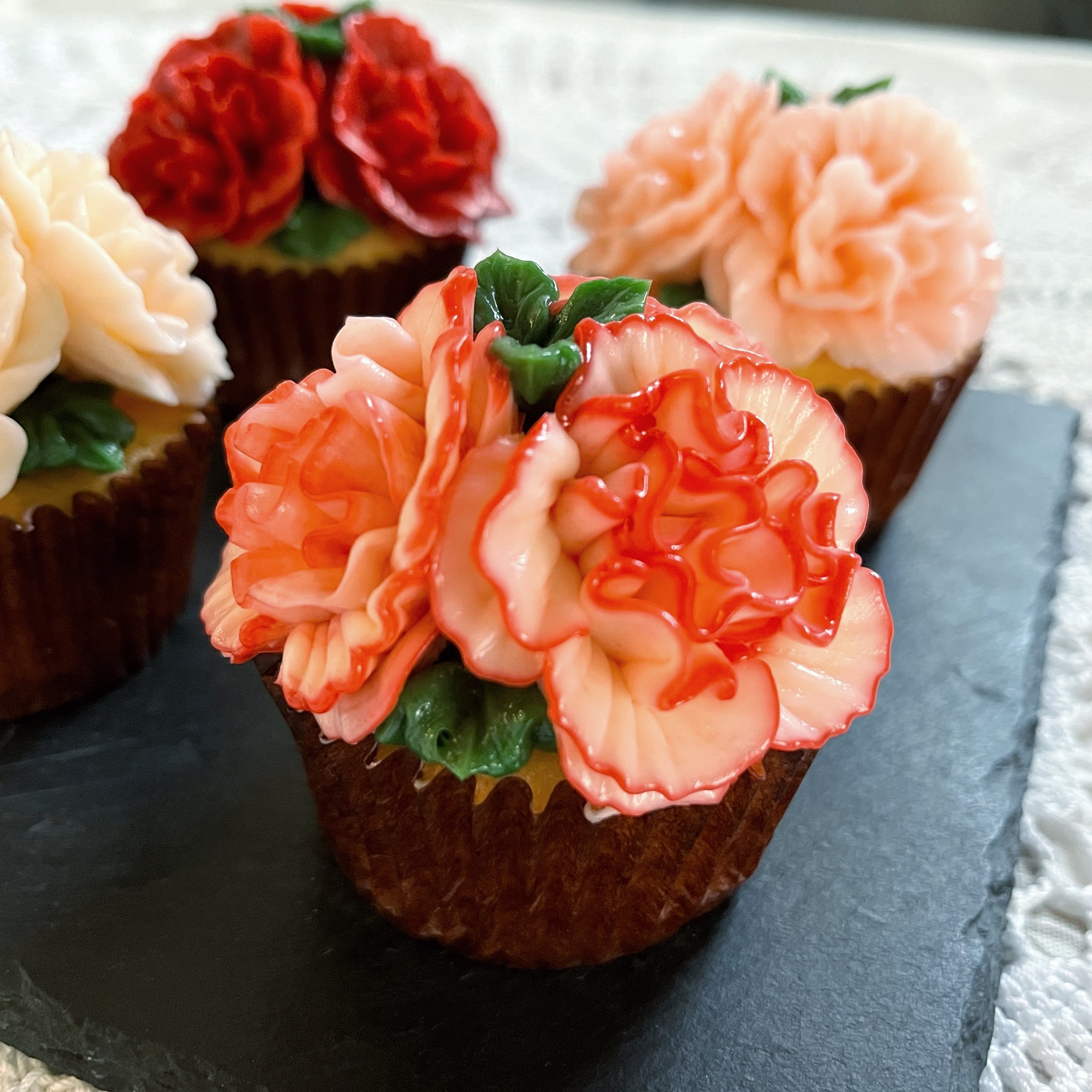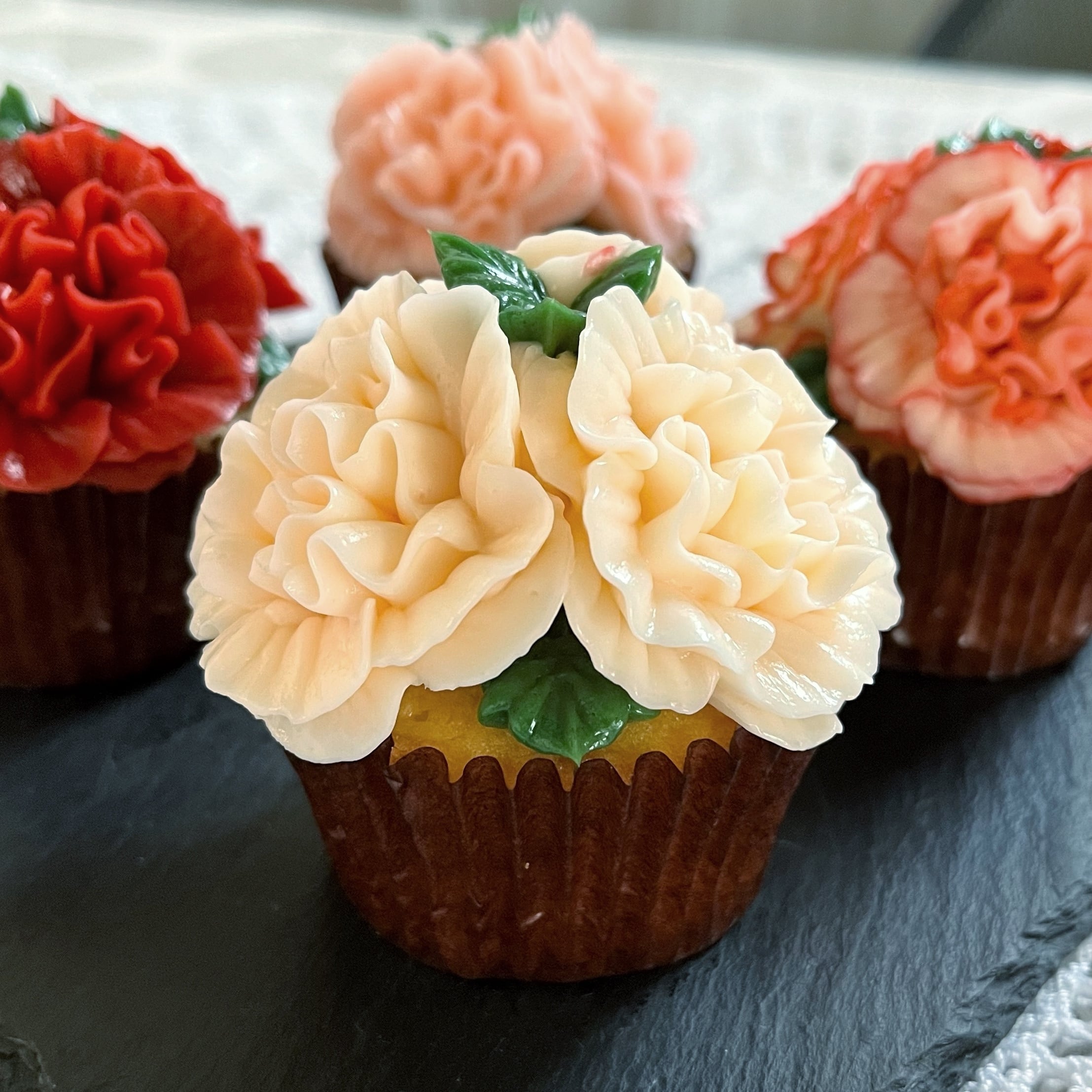 カーネーションのカップケーキ4個セットです。